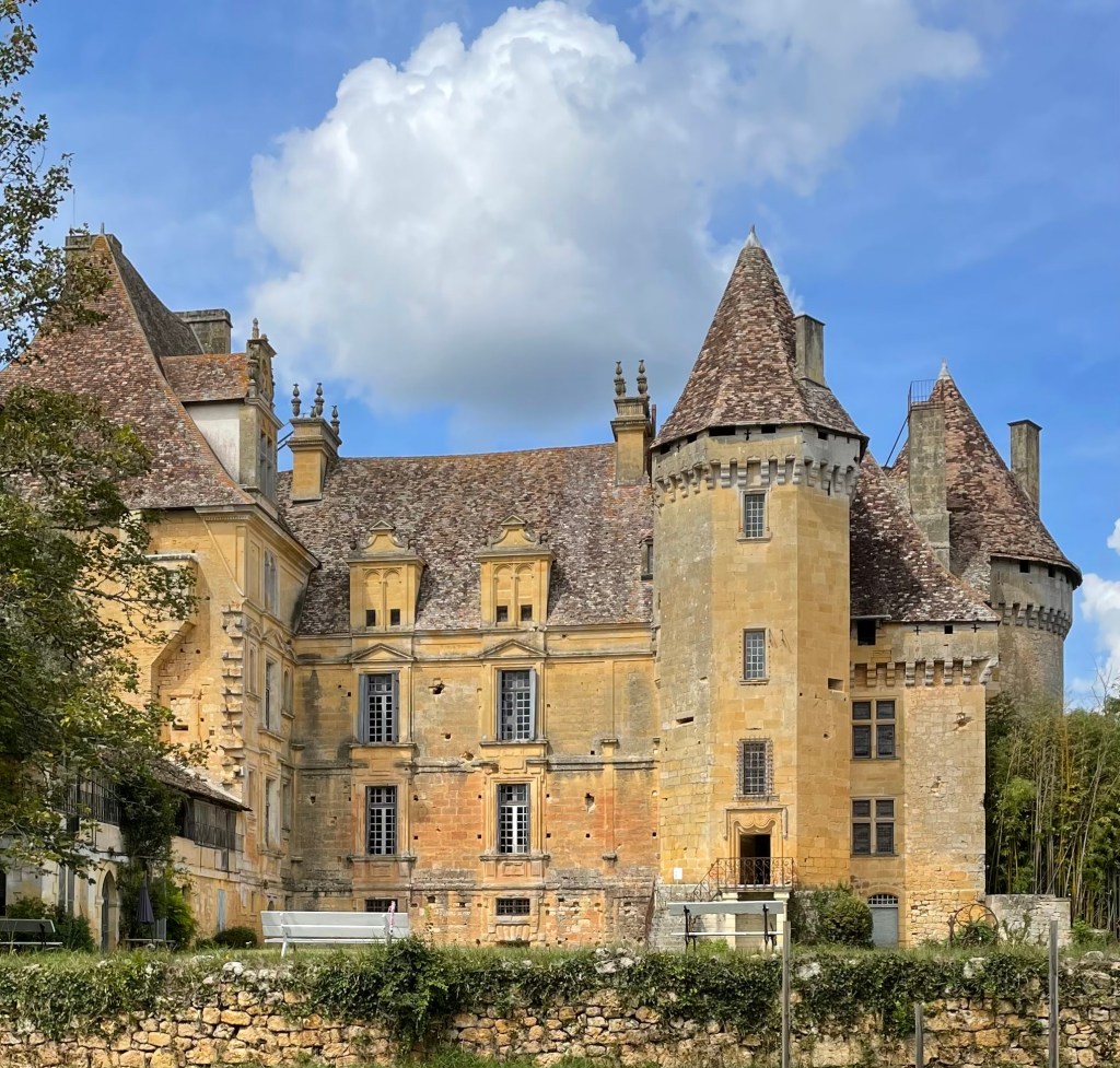 Château de Lanquais is situated near Bergerac and has an interesting mix of architectural styles with a 14th century fortified castle attached to what resembles a 16th century Renaissance palace. Because of some similarities with the architecture of Le Louvre in Paris, it is often referred to as the unfinished Louvre of the Périgord